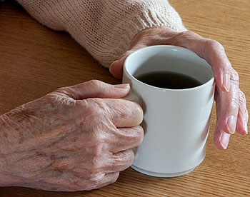 Die Kittelschürze hat sie um,